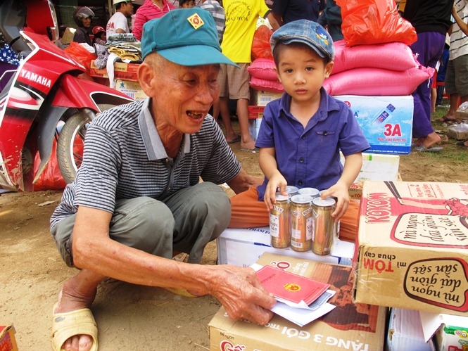 | Жители уезда Куангчать провинции Куангбинь получают материальную помощь от благотворителей. Фото: baoquangbinh.vn |