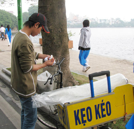 Работа по продаже товаров на ханойских улицах появилась сотни лет тому назад. Раньше ханойцы носили на плечах коромысла с корзинами товаров, таких как: бунъок (рисовая вермишель с пресноводными улитками), клейкий рис, хлеб... А сейчас местные жители катаются на велосипедах, продавая товары. Они продают такие товары, как блюда, циновки, одежда,... или покупают металлолом, сломанные электронные приборы... Уличными продавцами преимущественно являются малоимущие из пригорода Ханоя или из прилегающих провинций, таких как: Хынгйен, Хайзыонг, Ханам, Намдинь. Разнообразие товаров, продаваемых на улицах, отражается в разных видах рекламных объявлений. Рекламные объявления о продаже товаров звучат не только из динамиков, но и выкрикиваются самими продавцами.