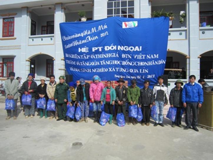 | Местные жители получают подарки от делегации корресподентов Радио "Голос Вьетнама" |