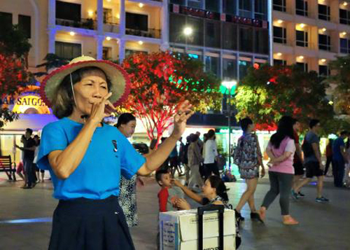 (VOVworld) – За последние 6 месяцев пешеходы на улице Нгуенхюэ города Хошимин часто видели к выступления группы глухонемых. Каждый день в 7 часов они ставят динамик в том месте, где собираются множество людей, и исполняют разные песни при помощи жестов и телодвижении.