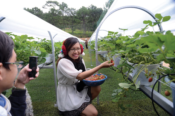 Приезжая в земляничные сады в Далат, отечественные и зарубежные туристы получают и услуги «встреча -провожание», поэтому для них эти сады стали благонадёжными туристическими местами. Здесь туристы не только могут любоваться земляничными садами, но и своими руками выбирают ягоды в подарок своим родным и друзьям. Каждый день туристы из разных уголков страны и из-за границы приезжают в замечательные земляничные сады, что делает горный город Далат всё более привлекательным.