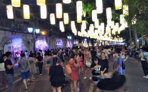 И тут и там, во всех уголках Ханоя, можно наткнуться на массовые гулянья, в центре которого непременно будет происходить танец льва, будут исполняться традиционные народные песни. Как дети, так и взрослые не прочь принять участие в празднествах, поучаствовать в мастер-классах по изготовлению мультипликационных масок, в игре по перетягиванию каната и в гонках в мешках. В этом году, во время Праздника Луны, многие родители гуляют со своими детишками по арт-улицу Фунгхынг, в окрестностях храма Ким Нган (42-44 Ханг Бак) и Дома наследия (87 Ма Мэй), что в Старом квартале. Жительница из района Хайбачынг Чан Хай Ань рассказывает: «Я привожу своих детей сюда, чтобы окунуться в праздничную детскую атмосферу. Мои дети участвуют в различных народных играх, своими руками делают игрушки из простых материалов, им очень интересно. Каждый раз, по случаю «Праздника Луны», я стараюсь выделить время и посетить с ними места народных гуляний».