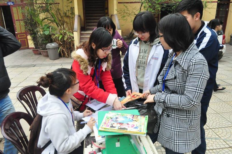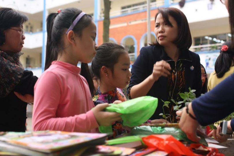 За неделю до акции «Час Земли - 2014» филиал организации «350 Вьетнам» на севере страны при Институте внешней торговли устроил своеобразное мероприятие – программу «Мини-библиотека» в начальной школе имени Доан Тхи Дием и средней школе имени Нго Ши Лиена. Школьникам были представлены основные понятия, связанные с изменением климата. Для этого использовались короткие клипы и слайд-шоу, рассказывающие об охране окружающей среды. Кроме этого, проводились разные коллективные игры. Заместитель председателя филиала организации «350 Вьетнам» на севере страны Нгуен Нгок Линь рассказала о программе «Мини-библиотека»: «Мы попросили администрации школ и преподавателей провести тематические беседы со школьниками, после чего мы сами организовали большую встречу. Дети принесли старые книги, которые были переданы в общественную библиотеку для детей из малоимущих семей в городе Хайфон. За каждые 10 книг мы посадили одно дерево. Сначала мы поставили цель – собрать от двух до трёх тысяч книг. Однако в результате мы смогли собрать более шести тысяч единиц печатной продукции».
