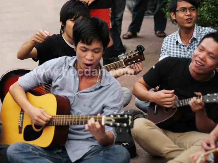 (VOVworld) - Нет сцены, нет разноцветных люстр, нет звуковой системы, а также нет стульев для зрителей…, однако выступления группы «уличных певцов» всегда привлекают внимание тех, кто проходит мимо памятника императору Ли Тхай То на улице Динь Тиен Хоанг в центре Ханоя. Зрители стоят в большом кругу, в центре которого сидит толпа молодых людей с гитарами, коробками-барабанами кахон, игральными костями, некоторые из них поют... Все они собираются в своеобразный хор.