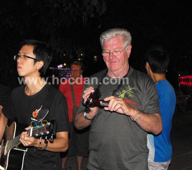 Среди зрителей, внимательно слушавших музыку, есть гражданин Великобритании по имени Вуди. Он щёлкал пальцами в такт музыке в исполнении группы «уличных певцов». Вуди с удовольствием сказал: «Я уже смотрел выступления уличных артистов во многих странах мира, и вижу, что уличные выступления в Ханое мне интересны. Они многолюдные, молодые и талантливые. Здесь много девушек умеют играть на гитаре. Я получаю огромное удовольствие, когда слушаю музыку на берегу озера Возращённого меча».
