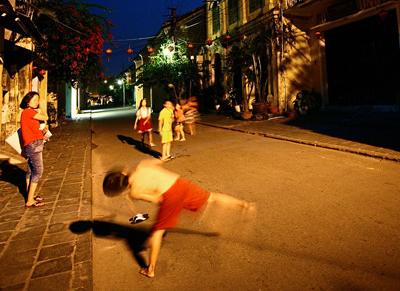 В лунные ночи древний город Хойан светится тысячами разноцветных фонариков. Ночь – это время, когда туристы неторопливо шагают по улицам древнего города. Туристы со всех концов мира могут полюбоваться красотой древнего города Хойан, особенно в ночное время. Мария, туристка из Франции, с большим интересом смотрела на фонарики. Она сказала: «Фонарики в этом древнем городе очень красивые и вызывают у меня такое ощущение, будто они приветствуют туристов. Хотя здесь я ещё не ходила по всем улицам, мне очень нравятся уличные выступления местных жителей».