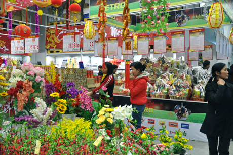 В эти дни на новогодних цветочных базарах на улицах Хоанг Хоа Тхам, Нгитам, Куангба... продаются разноцветные декоративные ветки персика с бутонами, которые без сомнения украшают столичные улицы. В связи с наступающим новым годом по лунному календарю цветочные базары работают целый день, чтобы вы желающие успели купить цветы. Нгуен Тхи Хуен, член администрации цветочного базара Куангба, сказала: «С 23 декабря по лунному календарю, когда отмечается праздник Духа дома, до момента наступления новогоднего праздника цветочный базар Куангба работает круглосуточно. Здесь продаются различные виды растений: цветущие персиковые деревья Нянтан, декоративные мандариновые деревья Тылиен, желтые маргаритки Нянтан, Охны цельнокрайние из города Хошимина, орхидеи и лилии из города Далат. Яркие цветы делают атмосферу более радостной и оживленной».