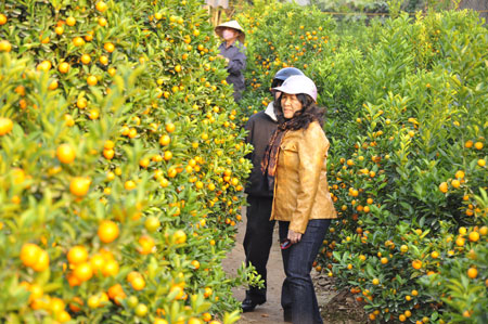 В этом году зима пришла поздно, так что цветы зацвели рано. Вся деревня утопает в море разноцветных цветов. Это - возможность, которую ханойская молодёжь не хочет пропустить. Ежедневно сюда приезжают молодые юноши и девушки, чтобы сфотографироваться и просто вдоволь насладиться живописным пейзажем. Студентка Ханойского института предпринимательства и современных технологий Ле Хуен сказала: «Мы приехали сюда, чтобы сфотографироваться на фоне традиционных новогодних персиковых цветов. Здесь очень много красивых цветов и природный пейзаж тоже чудесный».