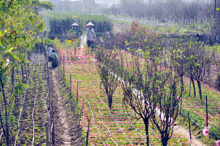 В этом году по причине непогоды персиковые цветы не успели зацвести точно во время нового года по лунному календарю. А до нового года остаётся не так много времени. Хозяин персикового сада Нгуен Ван Чунг сказал: «В этом году из-за слишком холодной погоды 70% персиков не успели зацвести во время нового года. Я вырашиваю персики уже почти 40 лет. Развитие этих цветов во многом зависит от погоды. Сейчас я надеюсь, что в ближайщие дни будет тепло, чтобы персиковые цветы красиво зацвели».