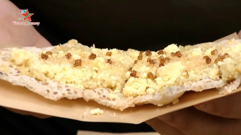 (VOVWORLD) - Это очень простое блюдо, потому что для его приготовления используются простые ингредиенты. Снаружи рисовая бумага, а внутри слой зеленой фасоли и проса с желтым и белым сахаром.