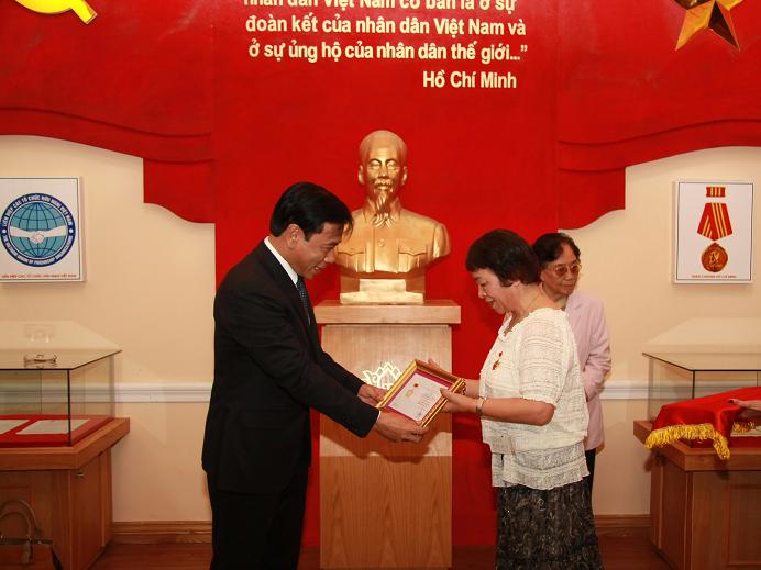 The Vietnam Union of Friendship Organizations last year conferred Hiramatsu Tomoko with the “For Peace and Friendship Among Nations” insignia for her great contribution to Vietnamese people.