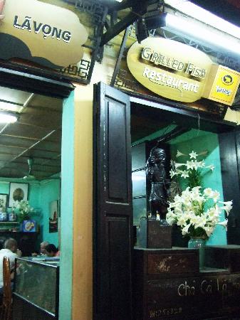 There’s a dish that no foreign visitor should miss when they come to Hanoi - Cha Ca, or grilled fish. Cha Ca La Vong is an unassuming two-story restaurant about half-way along Cha Ca Street which was called Hang Son in the past. Some say the restaurant is over 200 years old. Others put its age at a mere 130. Whatever is true age, the restaurant has become famous for just one dish. The creation of this dish has been attributed to the Doan family, who for hundreds of years have lived at Number 14 La Vong Street. To draw attention to the restaurant, the Doan family erected a statute of La Vong - an old fisherman with a fishing rod in one hand and a bamboo creel in the other - hence the name Cha Ca La Vong.