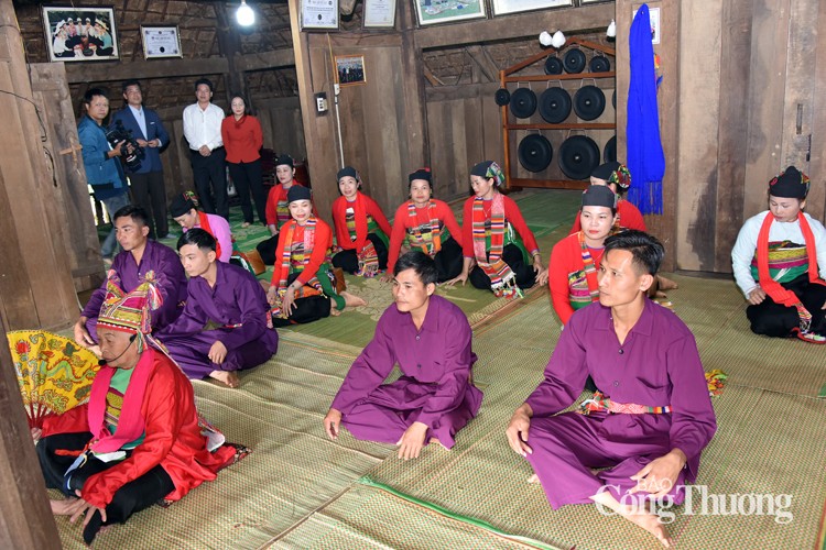All performances center around the flower tree, mirroring the customs and traditions of the Muong people, while showcasing their cultural and spiritual life. Participants wear traditional attire, with scarves draped over their shoulders to accentuate the gracefulness of their dance. Their movements simulate various aspects of daily life, including allocating land and water, constructing houses, warding off wild animals, and planting crops. Afterward, they dance around the flower tree, singing love songs and making promises, accompanied by the sound of gongs.