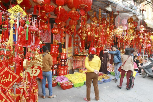 Bach took his girlfriend around and showed her the colorful streets of Hanoi. “This is Hang Ma street. It used to be very small and not very crowded like this. This is where people produce the paper horses, cars and clothes that we have seen burned in the street. They are selling paper decorative items for Tet. The yellow and red colors symbolize luck and prosperity.”