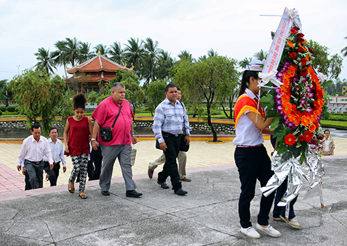In Quang Nam the delegation visited Nguyen Van Troi high school in Dien Thang Trung commune, Dien Ban district. Juan Flores Guitierrez moved the audience with a performance of his original song “Nguyen Van Troi lives forever” accompanied by Venezuela’s traditional Cuatro guitar.