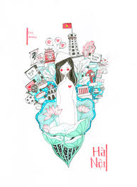 “A glance of Hanoi” by Vu Thi Thanh Thu, 20, is a kaleidoscope of the capital city, from the world-famous Old Quarter to traditional cuisine like pho. The author uses two main colors: blue as a symbol of a peaceful city and red to represent the enthusiasm and love for Hanoi. Thu talks about her top prize-winning design: “I had to draw it twice. In the initial sketch, I used water colors that simply failed to highlight my idea. I finally succeeded on the second try the following day”.