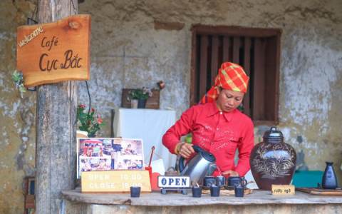 Hoang Thi Pao, a tourist who is enjoying her drink at the northernmost coffee house said: “The northernmost coffee house is very unique. It was upgraded from the oldest house of Lo Lo Chai village which is around 200 years old. The original architecture of the house has been maintained with a fence made of stones and a thick wall that keeps it warm in winter and cool in summer. What I also like about this place is the drink here is tasty. I love coffee and green tea here.”