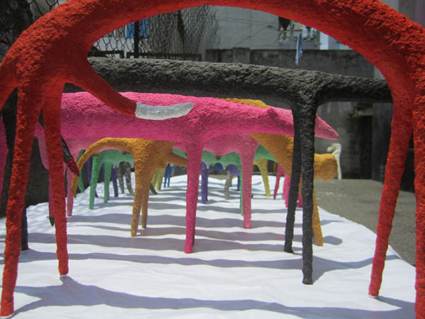 Thai Nhat Minh’s sculptures were inspired by the breeding season during which living creatures become enlivened and elated. “I want to keep the sensitive changes in feeling and nature in the breeding season. I worked on this program over 2 years. I used cardboard to create a natural and warm feeling.” Minh said.