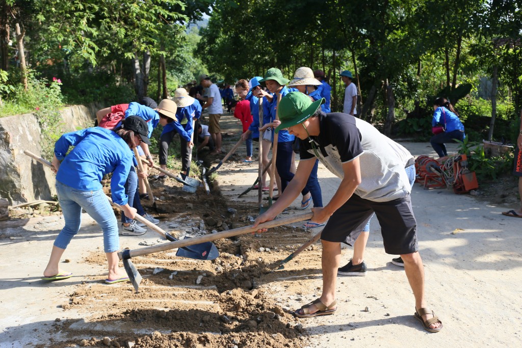 Young volunteers join local people in a clean water work (Photo: vienbetong.vn) |