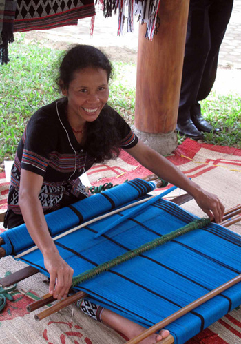| Artisan Mai Thi Hop is showing the weaving skills |