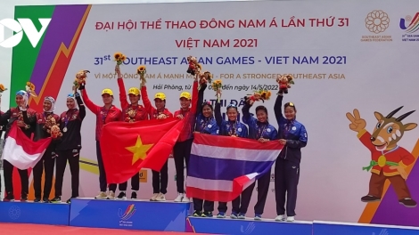 (VOVWORLD) - Vietnamese athletes won 181 gold, 106 silver, and 106 bronze medals to maintain the top spot in the standings as of Saturday. Thailand ranked second with 75 gold medals. On the last day of the competition, Sunday, 61 sets of medals will be awarded, which means that host Vietnam has secured the top position, while the rank of other participating countries can still change.