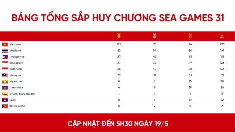 (VOVWORLD) - At the end of Thursday, Vietnam stood atop the medal tally at SEA Games 31, having secured 153 gold, 91 silver and 84 bronze medals. Thailand stood second with 53 gold medals, followed by the Philippines and Indonesia.