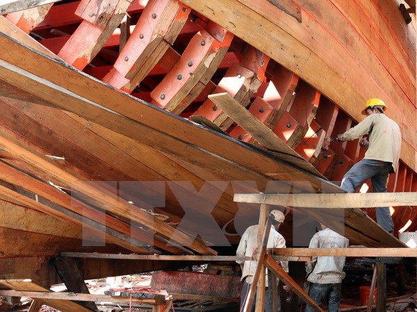 | Building and revamping vessels at Lam Thanh Phat ship building facility in Rach Gia City. (Photo: Le Huy Hai/VNA) |