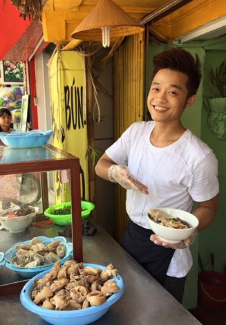 Inspired by the hard lives of street vendors and construction workers he meets every day, Diep and his family members opened an eatery in O Cho Dua Street in Hanoi.