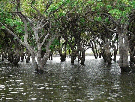 Au Tho B hamlet is covered with a green mangrove forest that spreads along 2km of coastline. 20 years ago the area was a scattered alluvial deposit exposed to sea waves which swept away crops and threatened people’s lives.