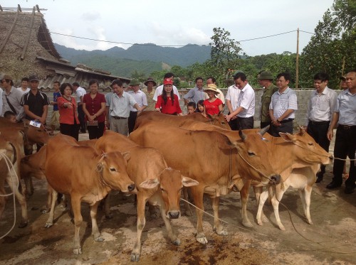Presenting cows for poor households in Thuong Xuan district in Thanh Hoa province.