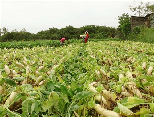 | Farmers in Soc Trang province’s Vinh Chau commune are harvesting turnip. (Photo: Chanh Da/ VNA/VNS) |