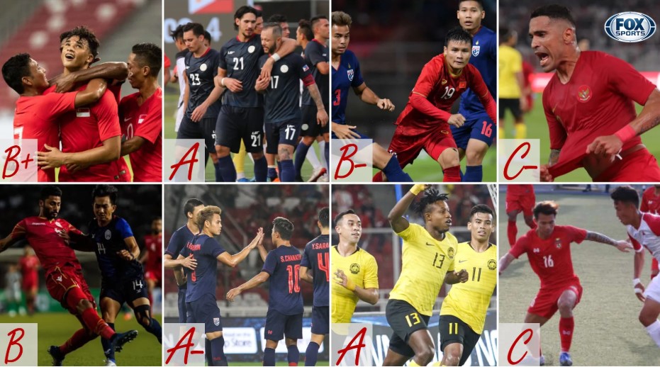 FOX Sports rated the Philippines and Malaysia the best performing teams with an A, followed by Thailand with an A-. Singapore, the temporary group G winner, was given B+ while Cambodia was evaluated with a B. The two lowest scoring teams are Myanmar and Indonesia with a C and C- respectively.