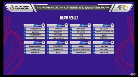 (VOVWORLD) - The Vietnamese national women’s football team is in Group B alongside Tajikistan, the Maldives, and Afghanistan, according to the draw for the qualifiers of the 2022 Asian Football Confederation (AFC) Women’s Asian Cup on Thursday in Malaysia. This group is considered comfortable for the team of coach Mai Duc Chung.