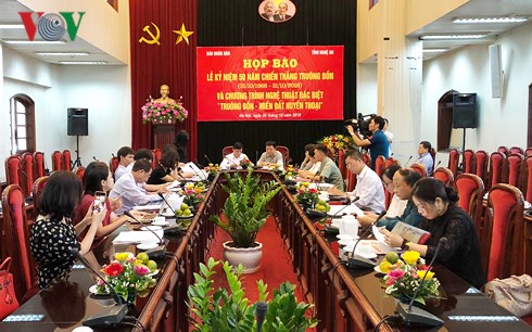 A press conference on the commemoration of the 50th anniversary of Truong Bon victory. |