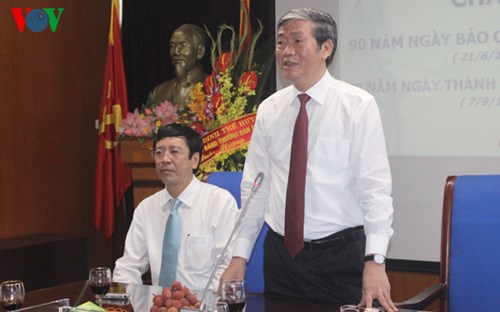 On the occasion, Head of the Party Central Committee’s Commission for Communications and Education Dinh The Huynh visited the Vietnam Journalists’ Association, the Vietnam News Agency, the People’s Daily newspaper, the Voice of Vietnam, the People’s Police newspaper and the People’s Army newspaper. While visiting the Voice of Vietnam, Mr. Huynh said:“I hope that the Voice of Vietnam will continue upholding its 70-year history and experiences accumulated over the past 70 years. In recent years, with its increasing staff and technology, the Voice of Vietnam has better fulfilled its tasks and diversified media platforms to become a strong multi-media complex”.