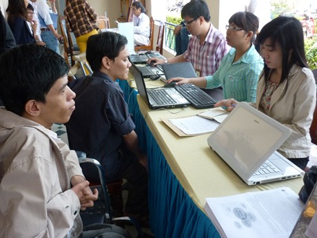 | Many persons with disabilities seek opportunities at the job bazaar (photo: VGP) |