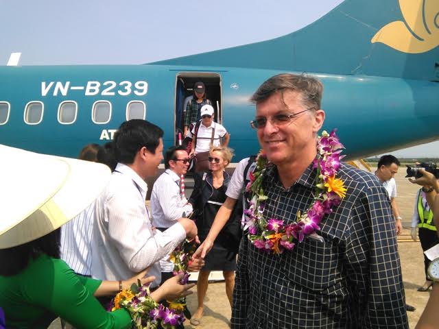 | The diplomats are welcomed at Dong Hoi airport, Quang Binh |