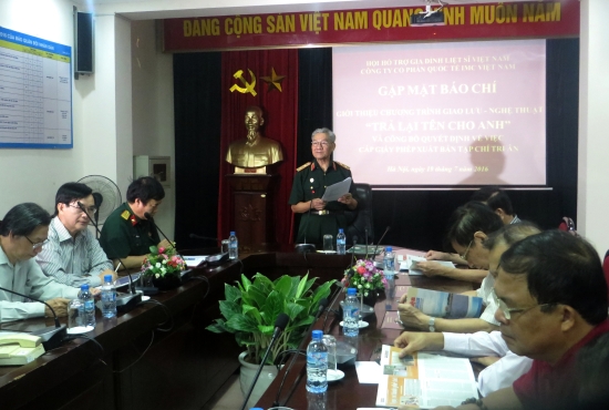 | Lieutenant General Le Van Han, Chairman of the Vietnam Martyr Families Support Association, spoke at a press conference to introduce the art program (Photo: bienphong.com.vn) |