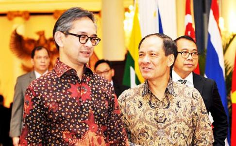 | Indonesian Foreign Affairs Minister Marty Natalegawa (left) and Secretary-General of Asean Le Luong Minh. (Photo:xinhua) |