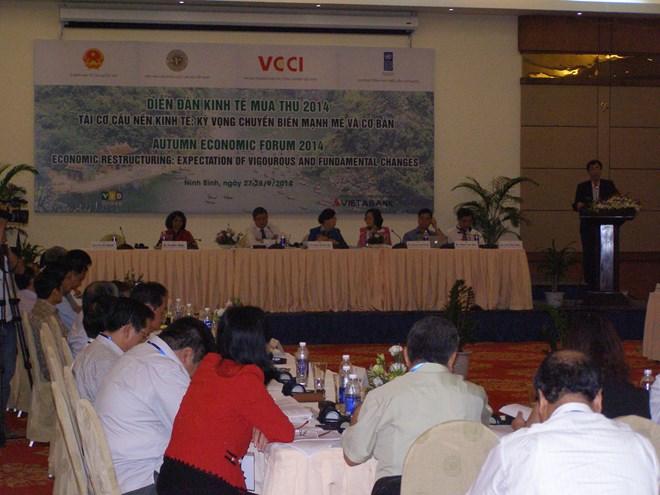 (VOVworld)-The Autumn Economic Forum 2014 with the theme “Economic Restructuring: Expectation for Vigorous and Fundamental changes” opened in Ninh Binh on Saturday.. The event, which is jointly organized by the National Assembly’s Economics Commission, the Vietnam Chamber of Commerce and Industry and the Academy of Social Sciences, aims to seek practical measures to restructure the national economy.