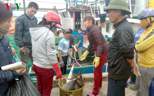 (VOVworld)-Fishermen in the central province of Binh Dinh have enjoyed a bumper harvest on their first offshore trip of the lunar new year. More than 50 vessels have docked at Hoai Nhon district over the past week, each pulling 2.5 tonnes of fish on average.