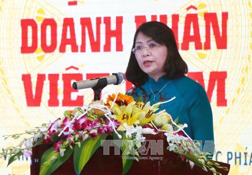 Vice President Dang Thi Ngoc Thinh talks with businessmen