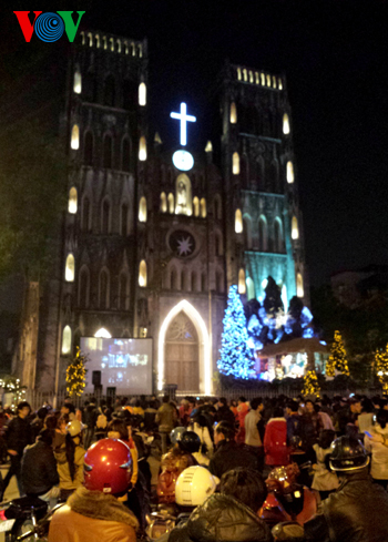 In the northern province of Ninh Binh, thousands of Christians and non-Christians flocked to the luminous and splendid Phat Diem Church to pray for the best for their families and friends. Phu Cam Cathedral in Thua Thien Hue province was filled with people. Big hotels threw big parties to celebrate Christmas. Archbishop of Hue Diocese Le Van Hong is Vice President of the Vietnamese Archbishop’s Council: “The Christmas season is celebrated not only by Catholic people but is a festival of love, in which we share happiness and joy with other people”.