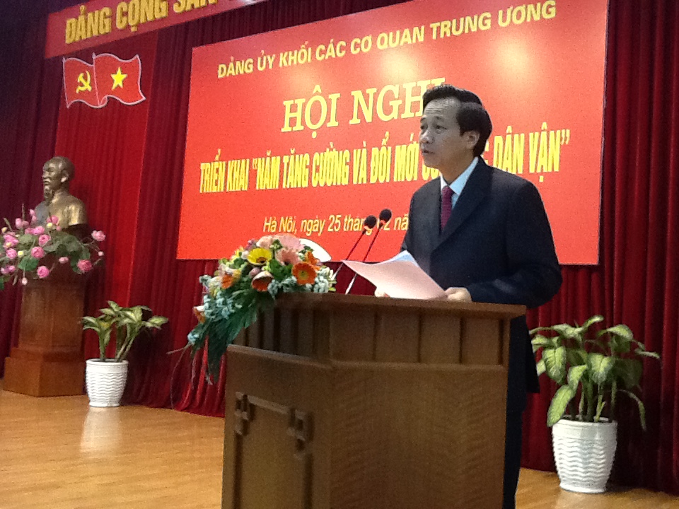 Speaking at the conference, Dao Ngoc Dung, Secretary of the Party Committee of the Central Agencies Block said that to concretize and implement mass mobilization work in 2014, committee, and party organizations should continue to study Party and Government resolutions and regulations on mass mobilization work. Dung said: “The year of mass mobilization 2014 will be implemented nationwide with two big steps. The first step is to raise awareness, defining the role and responsibility of each cadre, party member, youth member, and worker, especially leaders of Party and Government agencies. The second step is to strengthen mass mobilization work in state-owned agencies with the aim of building and implementing a democratic administration with discipline, openness, and responsibility.”
