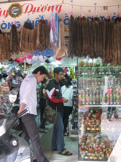 | Young men look for gifts for their dear women |