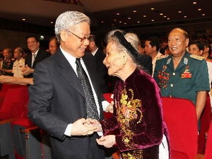(VOVworld) – A meeting was held in Hanoi today/on Friday to mark the 65th War Invalids and Martyrs Day. Party and Government top leaders and delegates representing thousands of war invalids, relatives of martyrs, and heroic mothers attended the event. Prime Minister Nguyen Tan Dung reviewed the heroic tradition in the struggles for national protection. He said, inheriting a thousand-year tradition and under the leadership of the Party; the Vietnamese people have overcome numerous difficulties to gain independence and freedom and unite the country. Millions of young people have given their lives for the nation. Prime Minister Nguyen Tan Dung said ‘Such great sacrifice has made Vietnam more glorious. They died for the nation’s immortality. The heroic sacrifice of martyrs prepared Vietnam’s blossoming. Vietnamese people will keep the martyrs’ merit eternally’.