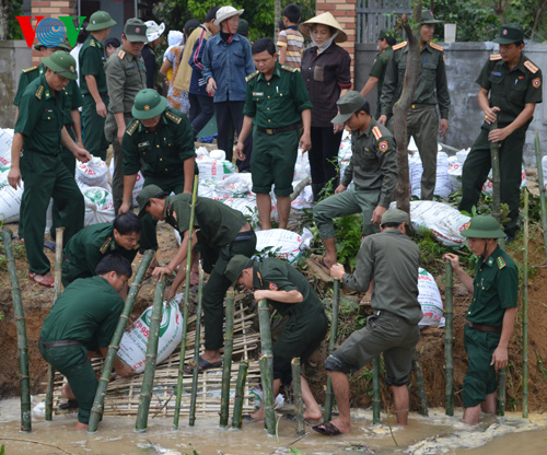 ![]() Vietnamese and Lao soldiers help people in Ha Tinh province strengthen dykes and repair houses |