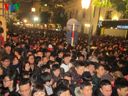 (VOVworld) – Thousands of people in Hanoi took to the streets to welcome in the New Year on Tuesday. Performances were held in front of the Hanoi Opera House in praise of the Party and the nation in the New Year.