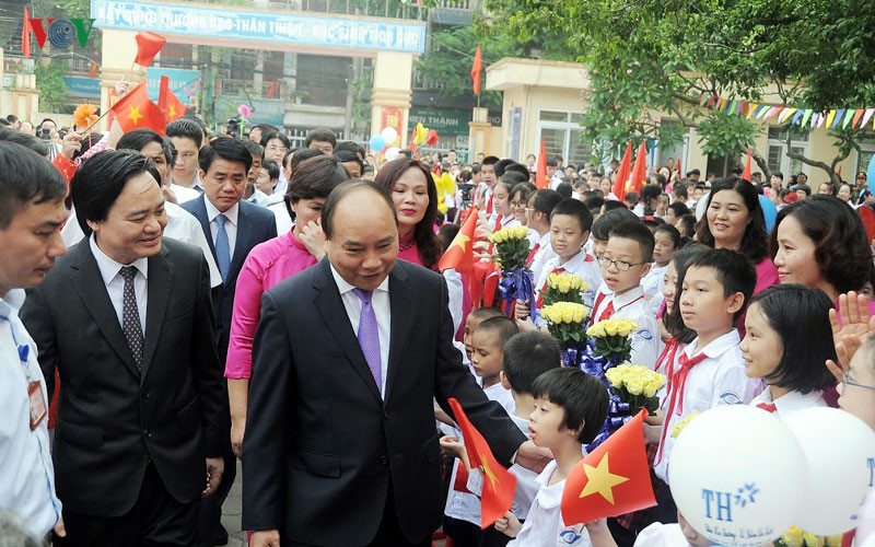 ![]() PM Nguyen Xuan Phuc attended a ceremony to start a new academic year at Nguyen Dinh Chieu Secondary School in Hanoi on September 5, 2016. (Photo: VOV)