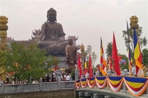 The 14.8m high statue, cast from 150 tonnes of bronze, shows Buddha Sakyamuni sitting on a lotus throne, preaching. The statue is a valuable spiritual and cultural edifice in Nam Dinh City. The Giant Buddha is of great significance to the Truc Lam Thien Truong Buddhist Pagoda, inaugurated on the same day.